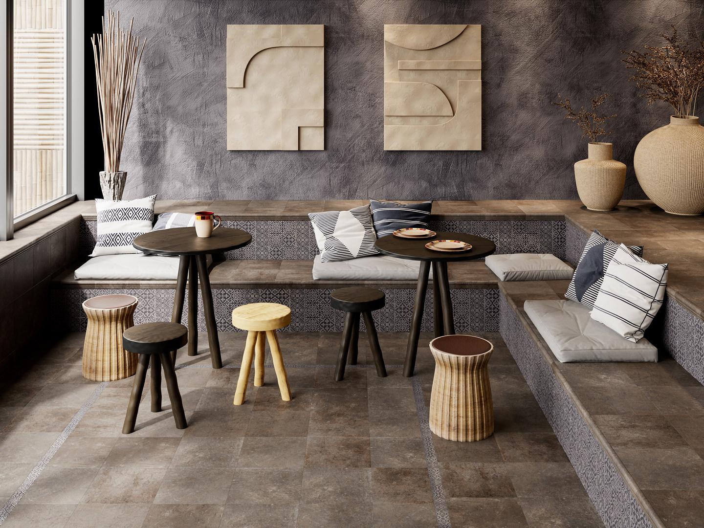 Коричневый цвет считается цветом комфорта, надежности и безопасности. Помножьте это на прочность и долговечность камня и вы поймете, что этот керамический гранит просто создан для уютного интерьера в классическом стиле.